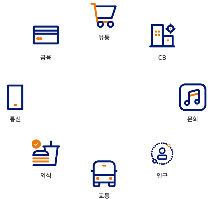 DATAi는 신용, 유통, 금융, 통신, 문화 등 전 산업의 데이터를 보유하고 있어 데이터의 소재파악이 용이합니다.